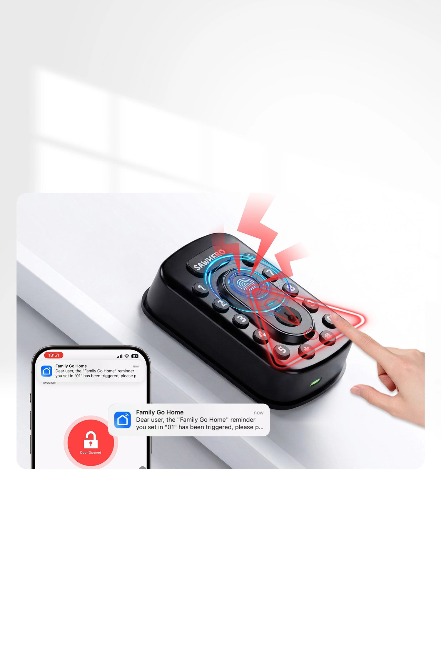 Connects directly to your home network with no extra gateway needed. Check lock status, unlock remotely, and create temporary access codes for guests—all through the app from anywhere.