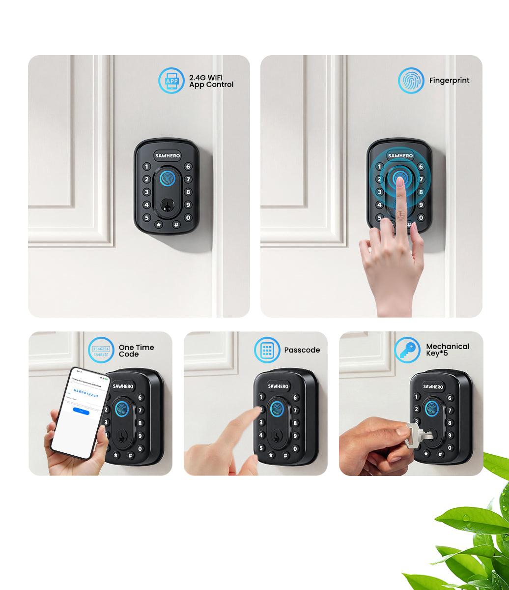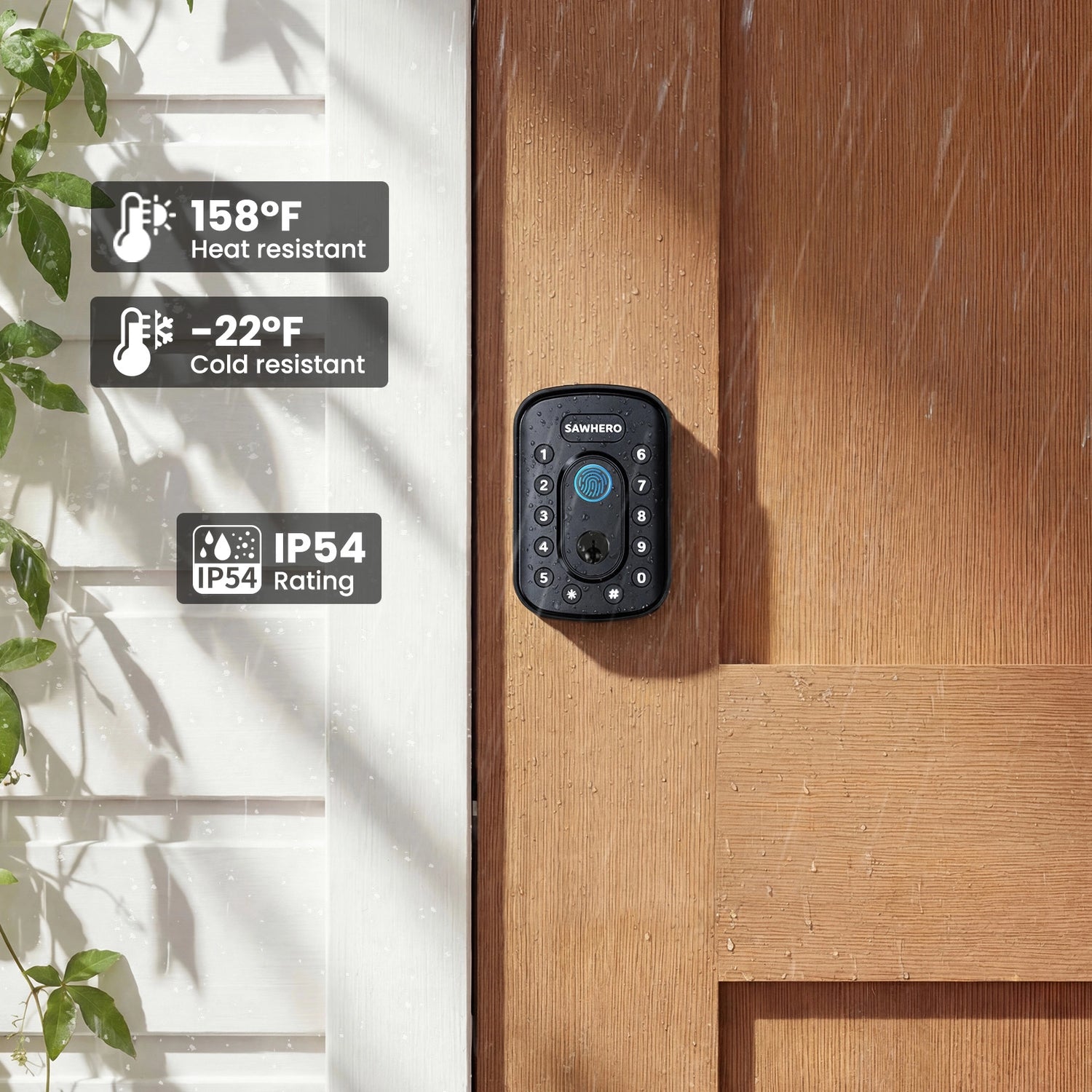 Designed for everyday home security, this fingerprint door lock provides keyless access via fingerprint, app, or anti-peep keypad. Easily manage access for family members or guests anytime through the app. Two physical keys are included as backup.